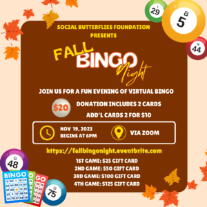 Join us for an exciting evening of virtual BINGO as we raise awareness for lupus and fibromyalgia! Get ready to shout "BINGO!" from the comfort of your own home and win amazing prizes. This online event is perfect for friends and family of all ages. Don't miss out on the fun!