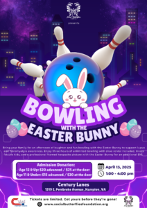 Strike Up Some Fun with the Easter Bunny! Join us for a Family Fun Afternoon of Bowling on Sunday, April 13, 2025, from 1-4 PM at Century Lanes (1519 E. Pembroke Avenue, Hampton, VA). Admission Donation: Age 11 & Up: $20 advanced / $25 at the door Two children (10 & under) bowl FREE with...