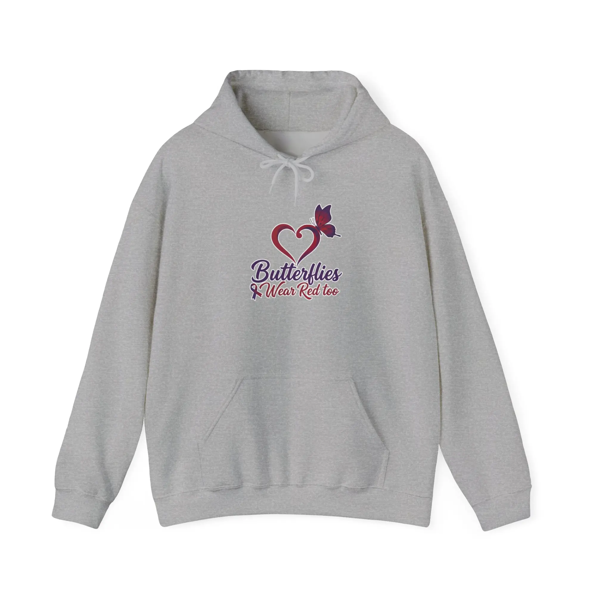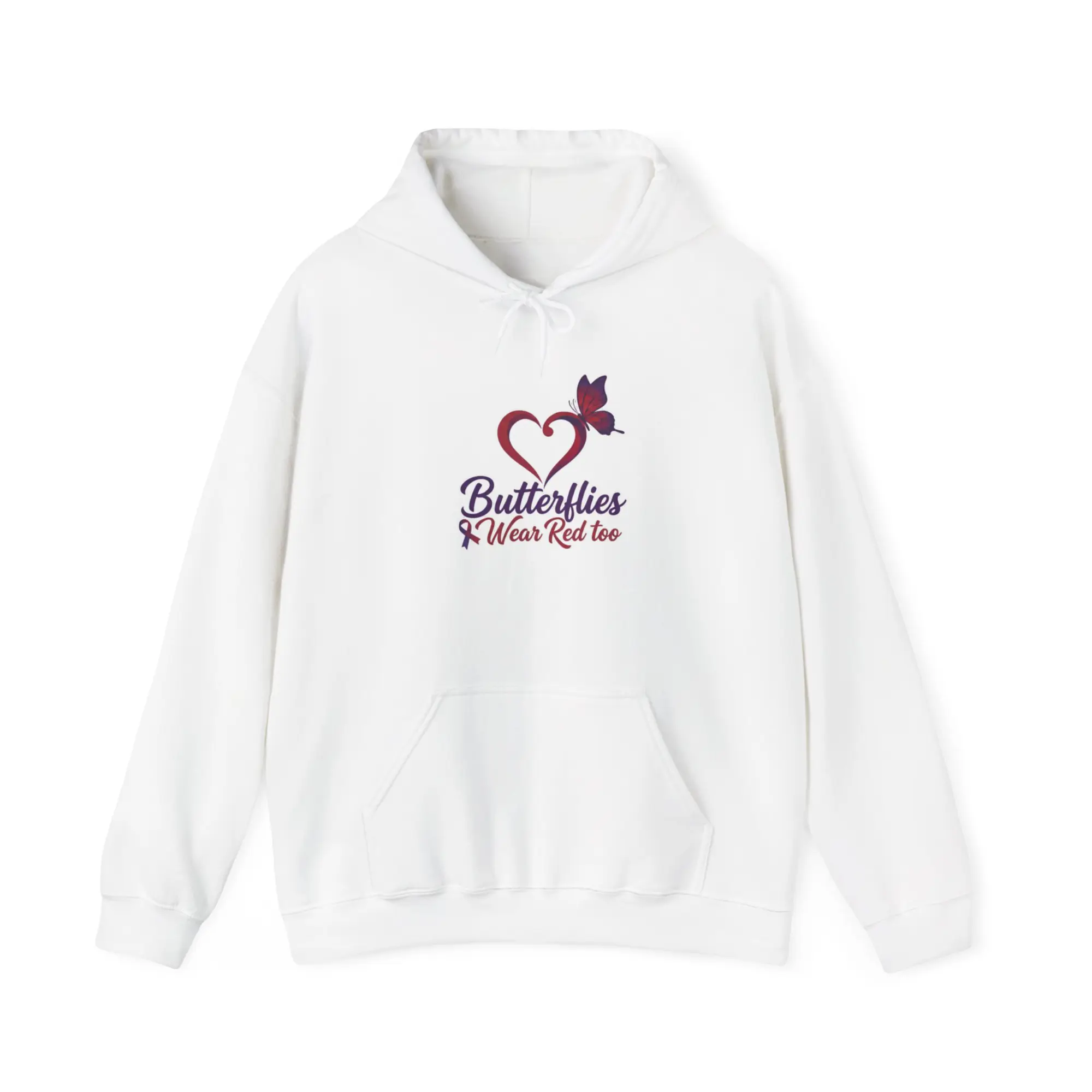 Butterflies Wear Red – Created to support Heart Health Awareness and honor butterflies impacted by heart disease. This Gildan 50/50 hoodie offers cozy warmth, lasting comfort, and everyday wearability—perfect for staying comfortable while spreading awareness, strength, and heart-healthy hope.