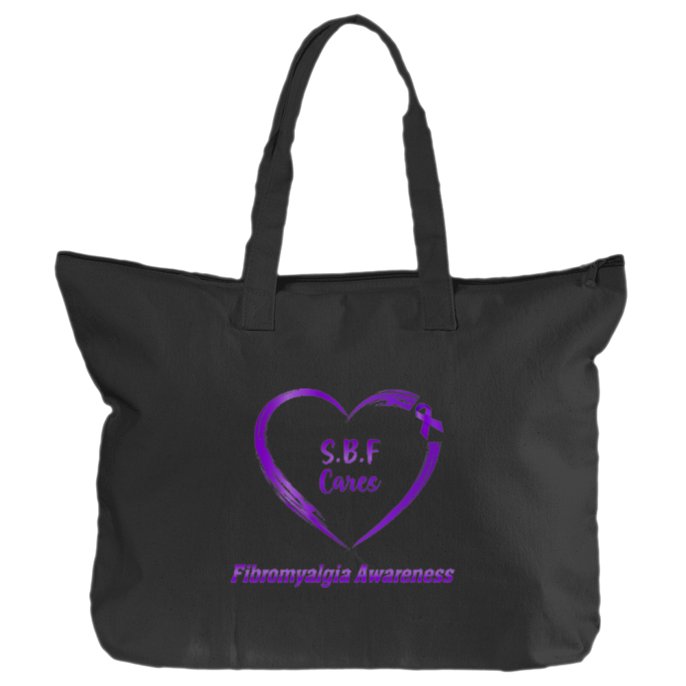 SBF Cares about fibromyalgia awareness. Show that you do too when you carry this zippered tote.